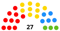 Gobierno 2023-2027 (14) 9 CC 5 PP Oposición (13) 10 PSOE 3 Vox | |