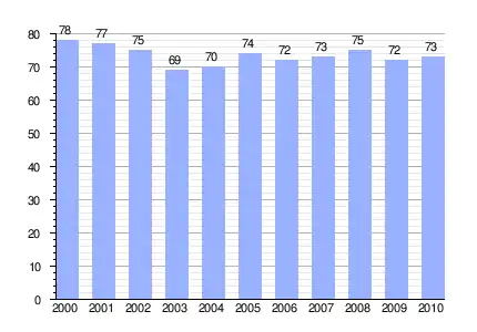 | Gráfica de evolución demográfica de Azpíroz-Lezaeta entre 2000 y 2010 |