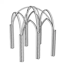 Los arcos laterales apuntados suelen estar compuestos por dos arcos de circunferencia del mismo radio que los arcos diagonales, lo que facilita el cimbrado y la construcción del conjunto.[1][2]​ De este modo, trazando los arcos diagonales y los laterales con centro a la misma altura, resulta que la clave de los arcos diagonales se encuentra ligeramente más elevada que las de los arcos laterales, y la plementería adopta la forma de casquetes de doble curvatura,[3]​ lo que le confiere una gran resistencia con un mínimo espesor.
