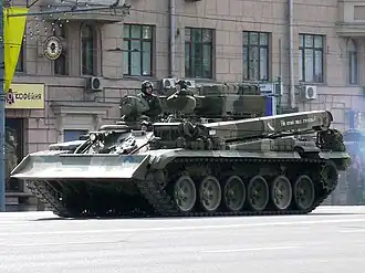 - Vehículo blindado para recuperación y reparación, basado en el chasis del T-72. Su torno puede mover hasta 110 t y la grúa 13 t.