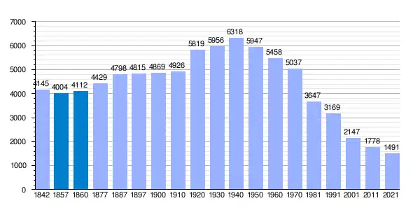 | Gráfica de evolución demográfica de Baños de Molgas[4] entre 1842 y 2021 |