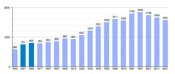| Gráfica de evolución demográfica de Baños de Río Tobía[2] entre 1842 y 2021 |