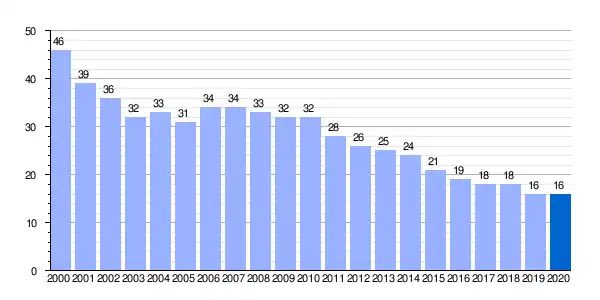 | Gráfica de evolución demográfica de Baños de la Peña entre 2000 y 2020 |