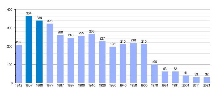 | Gráfica de evolución demográfica de Bañuelos de Bureba[3] entre 1842 y 2021 |