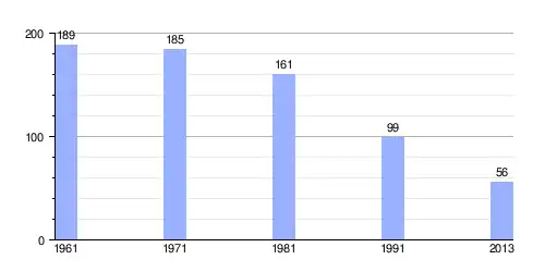 | Gráfica de evolución demográfica de Bašci entre 1961 y 2013 |