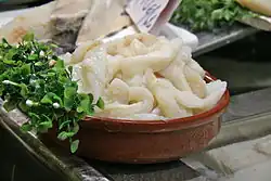 El bacalao en salazón es el ingrediente principal que se suele presentar en forma de lomos. El bacalao se somete a un proceso de desalamiento que se inicia un día antes. En este plato, el lomo del pescado, se fríe con abundante ajo y aceite. Se sirve con pimientos (generalmente asados) y pimentón. En algunas ocasiones, y de forma tradicional, se suele freír en la propia cazuela de barro en la que se presenta al comensal.