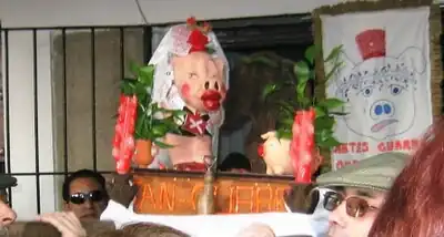 Llegada la tarde, minuto antes, minuto después, la Bacanal asiste jubilosa a la procesión de "san guarrín” por las plazas, que para ello son días burlones los que preceden a la Cuaresma. Y tras la procesión las brasas ya semiapagadas y las carnes casi consumidas van anunciando el final de la jornada. Que al día siguiente es lunes y hay que trabajar y quizás se esté un poco chispón. Si les gusta la fiesta, la guasa y el buen comer, eso sí sin mesa ni mantel, la Bacanal es su sitio.