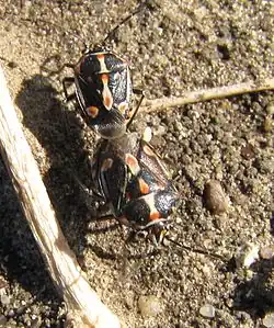 macho y hembra de Bagrada hilaris en apareamiento. | ||