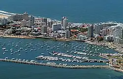 ![]() Vista de la bahía de Maldonado; al pie: la ciudad de Punta del Este. | ||