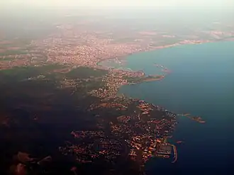 Vista aérea de la ciudad de Palma de Mallorca y de su bahía. | ||