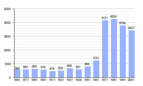 | Gráfica de evolución demográfica de Banchette entre 1861 y 2001 |
