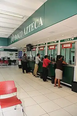 - ↑ a b c «Historia del Banco Azteca». Banco Azteca. 2 de mayo de 2017. Archivado desde el original el 2 de mayo de 2017. Consultado el 20 de octubre de 2023.