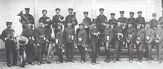 Esta Banda, que era de tipo militar, fue la primera que se conoció en Antioquia. Mostraba muy poca diversidad en los instrumentos y contaba con pocos ejecutantes. Operó por cierto tiempo en la ciudad de Rionegro, que en ese tiempo se había transformado, por su entorno y clima, en el principal foco de enseñanza y preparación de los grupos militares de toda la policía.