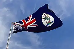 La bandera de la isla de Vancouver, en Canadá, es un Pabellón Azul con la Union Jack en el cantón y la insignia de la colonia de la isla de Vancouver en un disco blanco en la parte más alejada del mástil. El diseño de esta bandera se basa en las reglas establecidas por el Almirantazgo para las banderas coloniales en 1865, y en elementos del gran sello de la colonia de la Isla de Vancouver, establecido en 1849.[1] Sin embargo, la bandera en sí probablemente nunca existió durante este período; más bien Michael Halleran lo rediseñó en 1988 como una bandera local no oficial para la isla de Vancouver (ahora parte de la Columbia Británica, Canadá).[2]