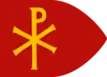 Siglo IV-XIII | Crismón, empleado desde Constantino I en estándares, escudos y monedas romanas durante varios siglos. | Representación del monograma de Cristo ΧΡ. |