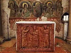 Cerca de un nicho se encuentra el altar, en mármol rosa de Verona, con bajorrelieves que representan al Bautista flanqueado por un sacerdote y un levita. Ahora se utiliza para la celebración de bautismos (dos por mes) y misas.