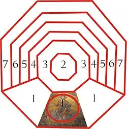 El baptisterio tiene ocho lados iguales con uno rectangular agregado en el lado oeste. Esta forma octogonal simboliza los "ocho días" (en latín: octava dies). Este es el tiempo para la Resurrección de Cristo, que sobrepasa nuestra semana de siete días. Era considerado un símbolo para la vida eterna dado a través del bautismo, cuando uno pasa de la vida del pecado a la vida de Cristo.