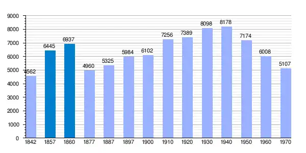 | Gráfica de evolución demográfica de Neira de Jusá[6] entre 1842 y 1970 |