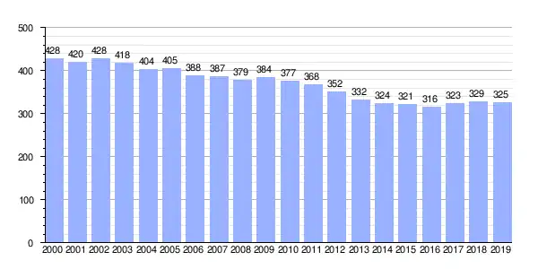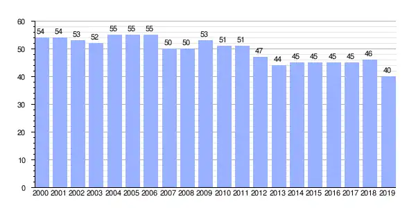 | Gráfica de evolución demográfica de Barciela (parroquia) entre 2000 y 2019 |
