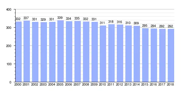 | Gráfica de evolución demográfica de Barizo[2] entre 2000 y 2018 |