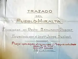 El médico francés presentó a la Municipalidad un plano de un pueblo (no un barrio) que dominaría «Mira Alta». Este fue aprobado en la sesión del 2 de agosto de 1912 por el Consejo de Deliberante,[2]