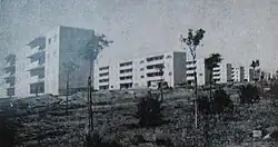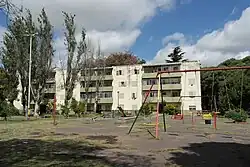 El barrio está compuesto por 34 edificios con estructura de hormigón armado y cerramientos de mampostería pintada de blanco al estilo racionalista, que fueron conocidos desde esa época como monoblocks o pabellones, un tipo de construcción que sería muy utilizada para la vivienda social desde su introducción en la Argentina, durante el primer gobierno peronista. Cada monoblock posee planta baja y tres pisos, y en total comprenden 959 departamentos: 783 de dos dormitorios y 176 de tres dormitorios.[3] El conjunto posee además un pequeño centro comercial para el abastecimiento de sus vecinos, una iglesia (construida posteriormente) y una plaza central.[2]