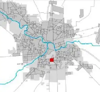 Sus límites oficiales son al sur con la avenida Elías Yofre, al norte con avenida Cruz Roja Argentina, al oeste con avenida Ciudad de Valparaíso y este con la avenida Pablo Ricchieri.
