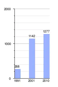 | Gráfica de evolución demográfica de Barrio Primero de Mayo entre 1991 y 2010 |