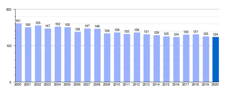 | Gráfica de evolución demográfica de Barrios de la Vega entre 2000 y 2020 |