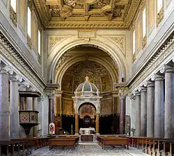 Los mosaicos del ábside datan de finales del siglo XIII y se atribuyen a algún artista del círculo de Pietro Cavallini. Representan a la Virgen María y escenas de la vida del santo titular.