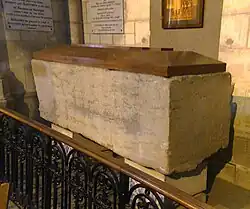 Según la tradición, sus cuerpos se colocaron, 21 años después de su muerte, en un sarcófago de mármol gris de los Pirineos, que mide 2,25 m de largo y 75 cm de ancho. Las reliquias atrajeron entonces a peregrinos, requiriendo la creación de una «Guardia de Honor» compuesta por monjes de San Martín.[6] La parroquia fue entonces considerada por los nanteses como una «terre sainte».[5]