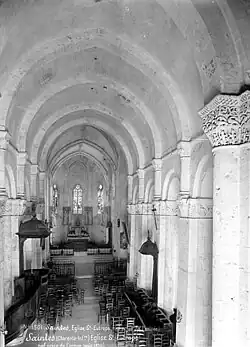 Antes de que se derribara la nave, el edificio original tenía 75 metros de largo (frente a los 42 metros actuales) y 15,60 metros de ancho, como testimonia Claude Masse en su descripción de la basílica que data de principios del siglo XVIII. La nave formaba una nave triple con cuatro amplios vanos. La nave principal tenía bóveda de cañón apuntado contrafuerte por las bóvedas de medio cañón de las naves laterales, principio probado de la arquitectura románica. La bóveda de esta nave principal se sustentaba sobre potentes arcos fajones que caían sobre semicolumnas encajadas, según un principio que se encuentra en el coro. Para muchos especialistas en arquitectura sacra, al frente de la cual estuvo Charles Dangibeaud en el siglo pasado, la nave antigua era una construcción única en Francia por su particular planta. De hecho, este último, cuyo suelo había sido rebajado deliberadamente, incluía una serie de escaleras que permitían la circulación de peregrinos entre la iglesia superior y la iglesia inferior.