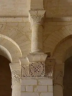 Hay en particular un "pesaje de almas" cuya realización debió tener lugar a principios del siglo XII. La escultura adquiere una dimensión particular, desarrollándose en una abundancia de detalles que mezclan personajes y motivos vegetales. Este capitel, entre los más conocidos, muestra el juicio de un hombre justo, como lo indica la barra de equilibrio inclinándose hacia un ángel de aspecto sereno, mientras un demonio antropomórfico parece muy molesto. Destacan otros capiteles historiados, en particular el que muestra un "Daniel en el foso de los leones" de gran realismo, destacando sobre todo por el drapeado de los ropajes.
