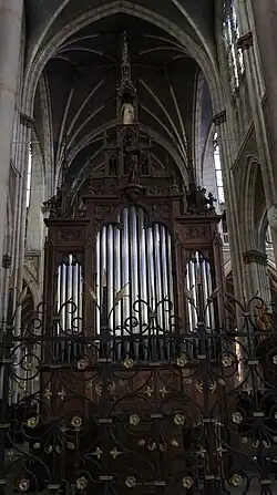 Los grandes órganos neogóticos (tribuna) fueron construidos por el factor Joseph Merklin (empresa «Merklin-Schütze») e inaugurados por Anton Bruckner. Este órgano[9]​ fue recompensado con una medalla de oro en la Exposición Universal de París en 1867, donde fue tocado por la mayoría de los grandes organistas parisinos.