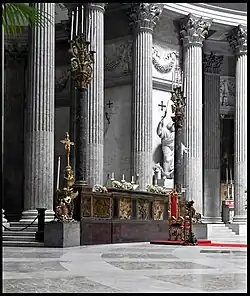 El centro la rotonda, del diámetro de 34 metros, está cubierta por una cúpula sostenida por 34 columnas de orden corintio, de 11 metros de altura con fustes en mármol de Mondragone, y pilares alternados. Sobre la columnata están las tribunas y, a lo largo de las paredes, ocho estatuas de santos: San Juan Crisóstomo, obra de Gennaro Calì, San Ambrosio de Tito Angelini, San Lucas de Antonio Calì, San Mateo de Carlo Finelli, San Juan de Pietro Tenerani, San Marcos de Giuseppe de Fabris, San Agustín de Tommaso Arnaud y San Atanasio de Angelo Solani.