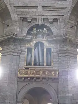 En el paramento del matroneo a la derecha del ábside, se encuentra el órgano de tubos, construido por el organero varesino Pietro Bernasconi que reutilizó parte del material fónico del órgano construido en 1840 por Felice Bossi, quien a su vez reutilizó partes de un órgano anterior, restaurado en 1820 por Antonio II Brunelli y probablemente procedente de la iglesia de San Giovanni in Conca.
