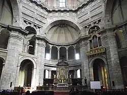 Sin embargo, el elemento característico del edificio es la cúpula, construida en la segunda mitad del siglo XVI según un proyecto de Martino Bassi: la cúpula tiene forma octogonal: el tiburio está marcado por lesenas y pilastras de esquina, con ventanas rectangulares coronadas por tímpanos triangulares y curvilíneos, y tiene una linterna en la parte superior.[12][26] La reconstruida cúpula del siglo XVI generalmente se considera un resultado excelente, especialmente si se compara con la importancia y el prestigio que debió tener la iglesia: el alto tambor que oculta casi por completo la cúpula fue sin duda una inspiración en la cúpula Sant'Ivo alla Sapienza de Borromini.[27] Este aspecto de la cúpula que ocultaba el tambor fue retomado y acentuado por el propio Borromini en la posterior construcción de la cúpula de la basílica de Sant'Andrea delle Fratte.[28]