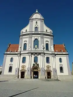 La basílica actual fue diseñada en estilo neobarroco por Johann Baptist Schott inspirada en la iglesia conventual de Fürstenfeld. La construcción fue financiada con donaciones de Baviera. Las obras tomaron dos años y medio y se terminó el 13 de octubre de 1912, siendo consagrada por el obispo de Passau Sigismund Felix von Ow-Felldorf.