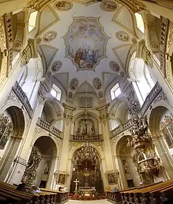 En la nave del lado sur hay un púlpito barroco, obra de Karl Sebastian Flacker del año 1723. Es una ilustración del himno del Magníficat. El púlpito está coronado con la figura del Espíritu Santo, debajo de él está Madonna rodeada de ángeles. En el dosel se sientan las personificaciones de los continentes: América, Europa, Asia y África. En el cuerpo hay esculturas de los cuatro evangelistas. En los nichos del presbiterio hay altares del siglo XIX. En el lado este hay altares de San Juan Nepomuceno, San Valentín, Santa Ana, San José y San Antonio. Sobre la puerta, en la pared norte, hay pinturas de Santa Jadwiga de Silesia, Santa Otilia y Santa Apolonia, y en la pared norte hay pinturas de San Juan Sarkander, San Francisco Javier y San Carlos Borromeo.[4]