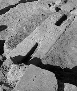 Durante la excavación, se descubrió formando parte de un cercado una lápida romana que se encontraba incompleta: