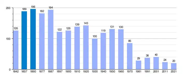 | Gráfica de evolución demográfica de Bascuñana de San Pedro[3] entre 1842 y 2021 |