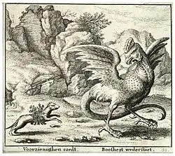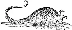 En la Enciclopedia de Aldrovandi se observa el grabado de un basilisco disecado, una falsificación común en la época que se fabricaba con los cuerpos de un pez ángel y una raya.