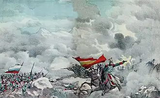 ![]() Tropas argentinas y chilenas rumbo a la Batalla de Chacabuco (12 de febrero de 1817), lideradas por el general José de San Martín. | ||||