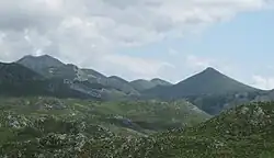 ![]() El Mazuco visto del Alto de La Tornería, con las crestas de Llabres a la derecha. | ||||