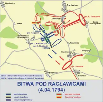 La batalla de Racławice (en polaco, Bitwa pod Racławicami) fue una de las primeras batallas del levantamiento polaco-lituano de Kościuszko contra el Imperio ruso. Los ejércitos se enfrentaron el 4 de abril de 1794 cerca del pueblo de Racławice en la Pequeña Polonia.[2]