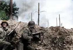![]() En el sentido de las agujas del reloj desde la parte superior izquierda: Cañón de campaña M1942 (ZiS-3) 76 mm usado por el Ejército Rojo soviético. Tropas soviéticas luchando en un taller destruido. Prisioneros de guerra del Eje (alemanes, italianos, rumanos, húngaros). Soldados soviéticos luchando en el tejado de una casa. Ju 87 de la Luftwaffe alemana después de un bombardeo en picado. Sturmgeschütz III, utilizado por la Wehrmacht alemana. | ||||