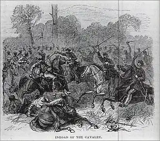 Cuando éstos se adelantaron, los brasileños entonces llevaron a cabo su movimiento a través de los bosques e isletas adyacentes al sitio, éstos en total sumaban 21 regimientos de 5.000 jinetes provistos de excelentes montados, los paraguayos se constituían en una fuerza de 1.000 jinetes. Tras una rápida acción, una columna acorraló sorpresivamente al capitán Castillo, a quien lo ultimaron. Luego otra columna se dirigió hacia el sargento mayor Caballero, pero este ya estaba alertado del movimiento enemigo y organizó brillantemente a sus unidades, que rechazaron sucesivas cargas enemigas y las obligaron a replegarse varios centenares de metros. De pronto aparecieron varios regimientos brasileños por la retaguardia, rodeando por completo a las fuerzas paraguayas. Ante esta situación contraria, las fuerzas de Caballero pudieron formar en retirada y dirigirse hacia Humaitá, tras un movimiento de distracción para ser finalmente protegidos por las baterías de la fortaleza.