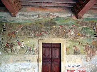 Fresco de la batalla en el castillo de Malpaga. | ||||