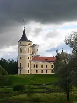Paul, que detestaba la Ilustración catalina, consideraba que la arquitectura clásica era una reproducción seca y emocionalmente inadecuada de las antigüedades.[13] Dmitri Shvidkovski señaló un encuentro en 1782 entre Paul y un artista y anticuario francés, Charles-Louis Clérisseau, en el Palacio de Chantilly, como el evento que podría haber moldeado los gustos arquitectónicos de Paul. Clerisseau, que sabía que era admirado por la emperatriz, reprendió al heredero aparente ruso por no haberle prestado atención antes y prometió denunciar la "falta de respeto" de Pablo a Catalina; poco más podía herir más los sentimientos de Pablo.[14] El amargo intercambio selló los gustos de Pablo a favor del emergente Romanticismo y, al mismo tiempo, del Barroco francés, y sembró la semilla de la "Batalla de los Palacios".