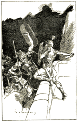 Por último, los romanos en retaguardia, al escuchar los gritos, empezaron a huir sin pelear,[177] y por eso ninguno murió en el combate, pero fueron cazados porque bloquearon sus rutas de retiradas peleándose entre ellos.[178]